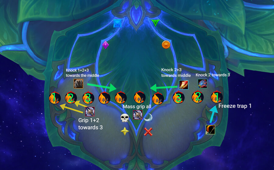 When the adds spawn, you want your melee team to interrupt the 3-4 adds in the middle, because those won’t get gripped/moved instantly. You will only really need to kick once, because you will Stun them all after Mass Grip.