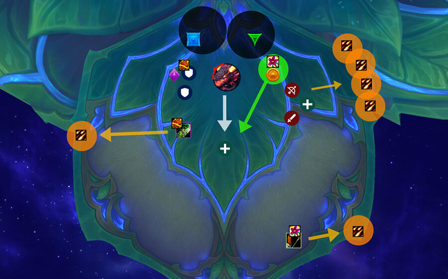 You will start the Phase in the middle (upper part) of the room, facing the boss towards the Tree. Everyone except for a few of your ranged healers should be close to the boss. This is because you will get your first set of Spirit adds and by standing in the middle of the room you will outrange them on the 1st blaze cast. Healers who are standing in the back, are doing it so they can start healing them ASAP, but that also means they have to be extra careful not to hit adds if they get blazes.