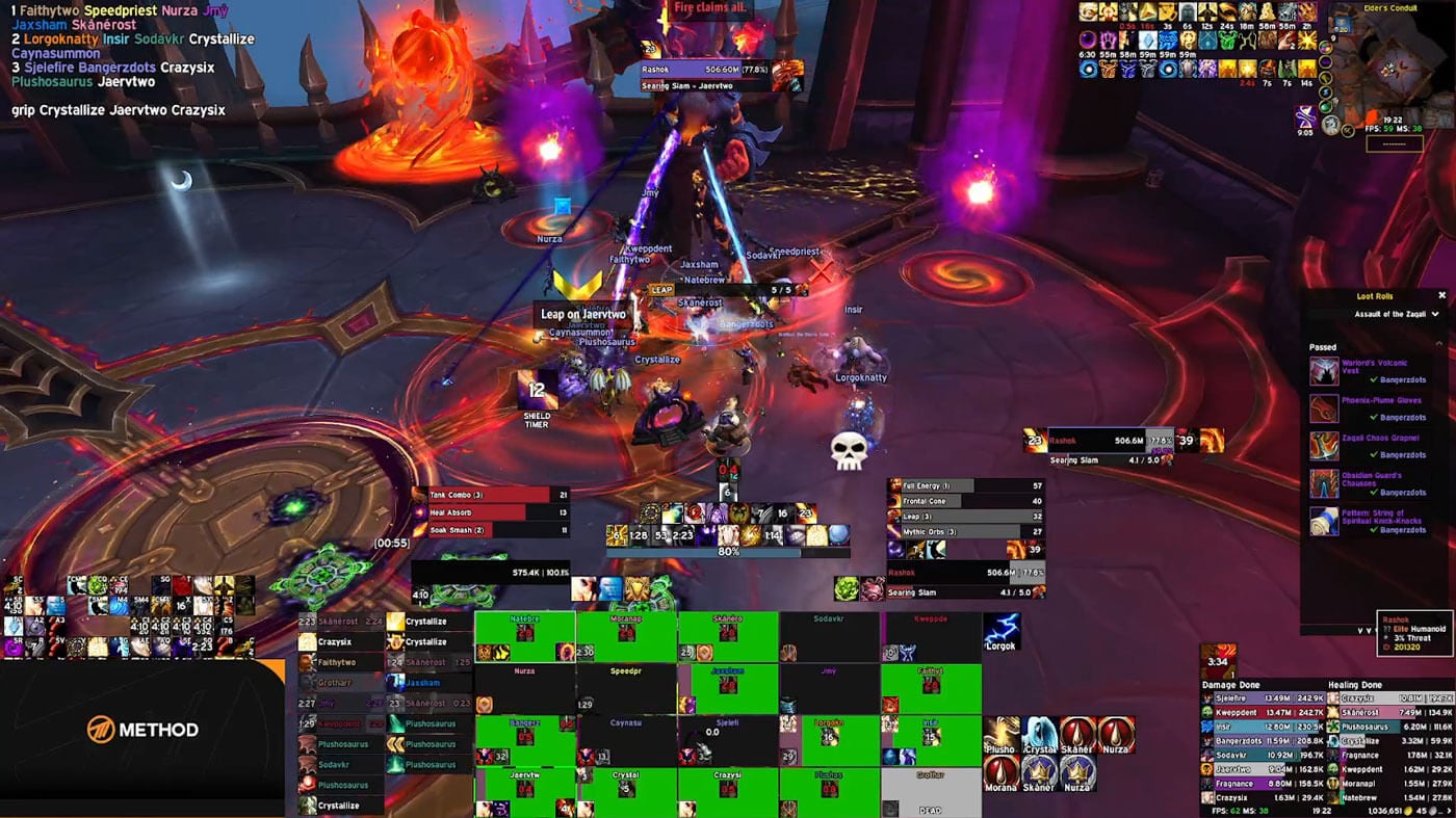 This picture shows what Crazy’s (former raider in Method) UI looks like during the raid encounter Rashok in the raid Aberrus, the Shadowed Crucible. It is a modified version of Atrocity's UI where he has made some personal changes and swapped ElvUIs Party and Raid Frames for Grid2.