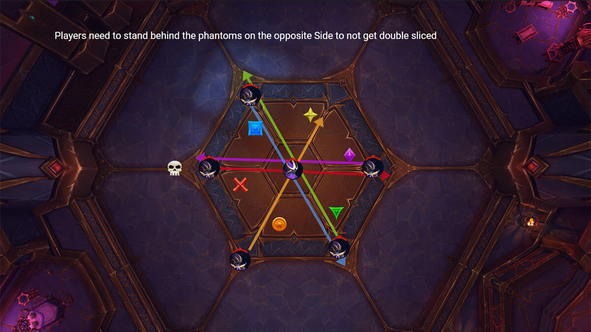 This is a super simple set. All Phantoms have to hit the boss in the middle of the room, so you just go to the opposite side of the boss than the Phantom that is targeting you.