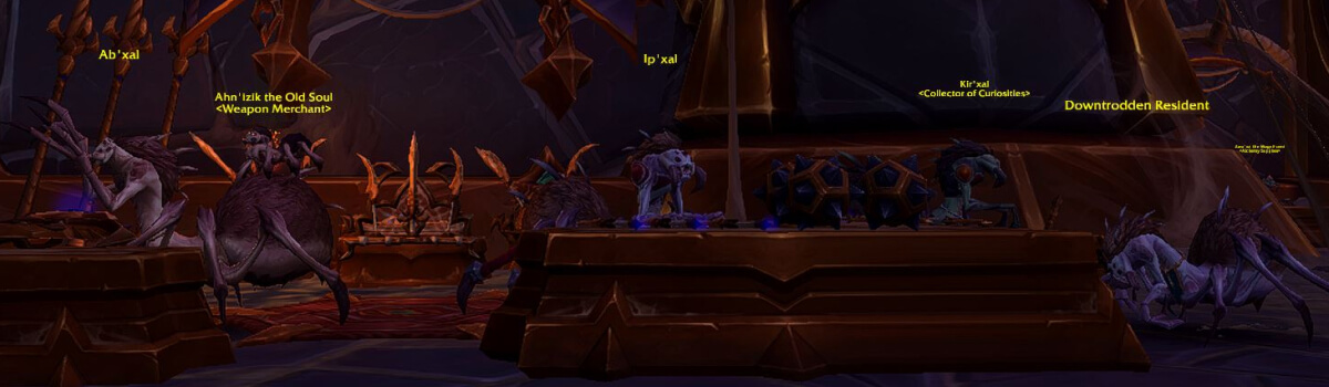 Once you have either the Mark of the Spelunker Supreme or the Web-Wrapped Curio, they can be traded in to The War Within Season 1 token vendors, Ip’xal, Ab’xal and Kir’xal, who are located in the lower part of the City of Threads subzone in Azj-Kahet. All 3 of the vendors are standing next to each other. If you are struggling to find them, make sure that you are on the lower floor of the City of Threads.