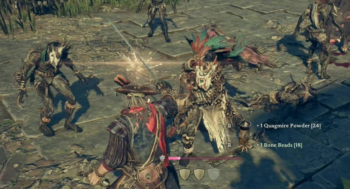 For example, Plague Crocodiles deal huge damage and have massive health pools, but they have a limited move set and their attacks are predictable. When they perform their lunging bite attack, be prepared to Perfect Block twice and then look out for the red glint as they are about to use Tail Sweep.